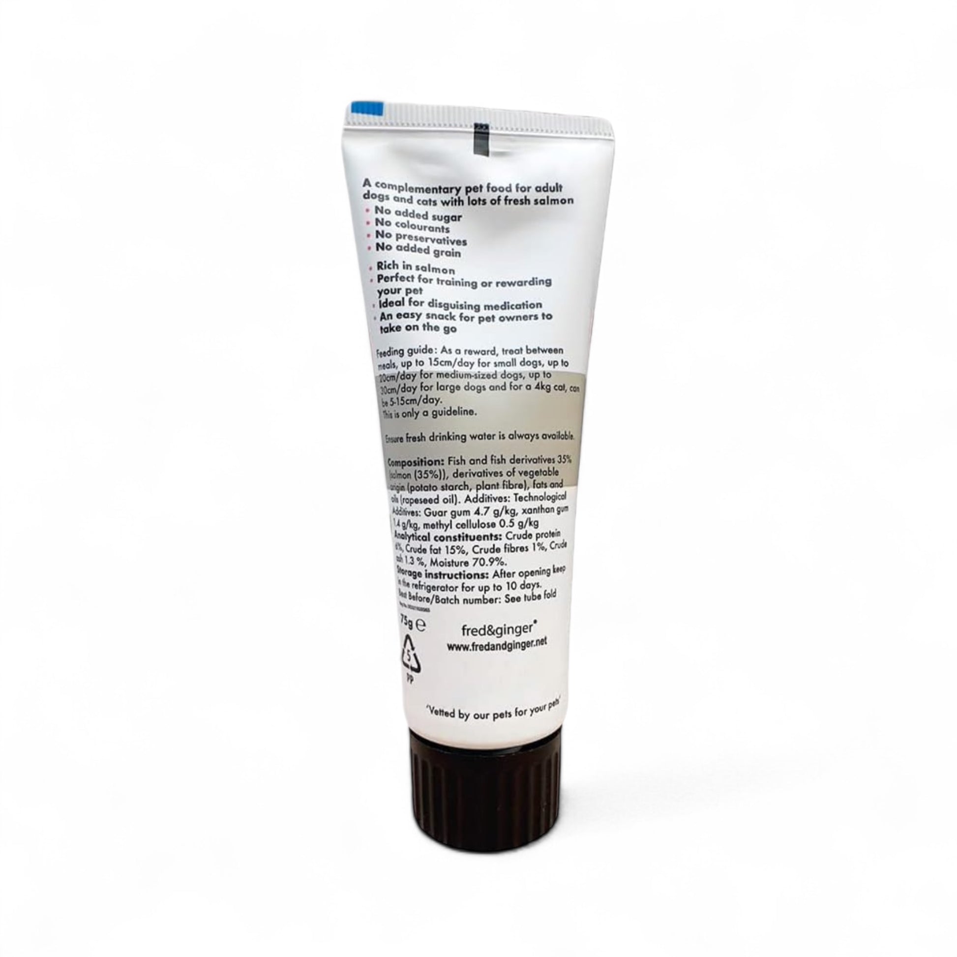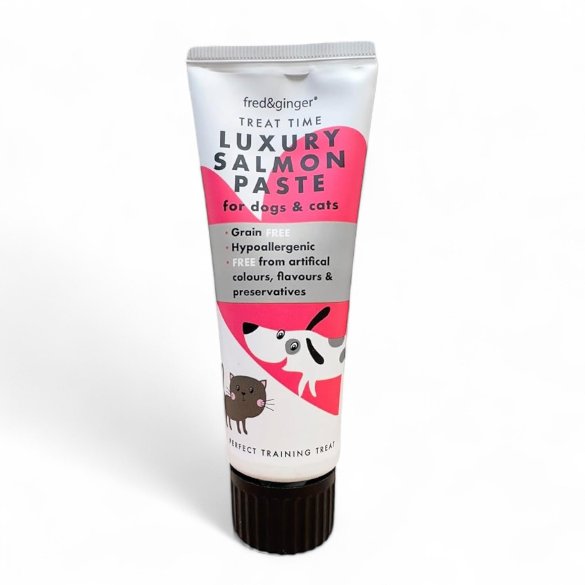 The Fred & Ginger Luxury Salmon Paste for dogs is grain-free, hypoallergenic and free from artificial colours, flavours and preservatives.